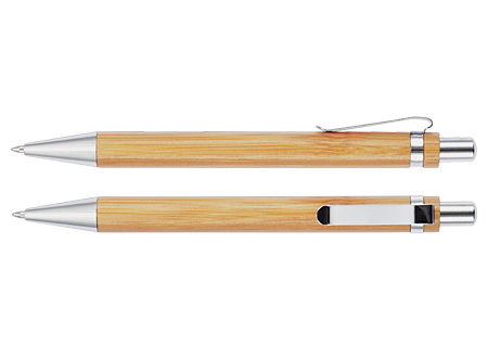 Bolígrafo de Madera de Bambú, con clip metálico. Escritura azul.
