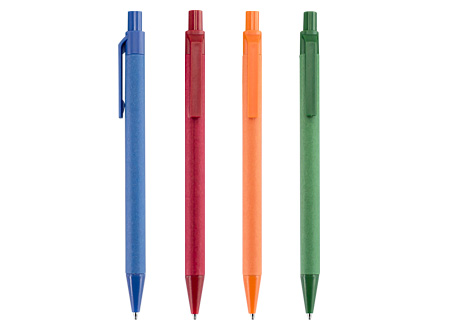 Bolígrafo Ecológico con cuerpo de cartón reciclado de color, con terminales de plástico de color PET biodegradable. Escritura Azul.