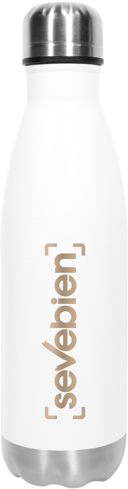 Ø 6,5 x 26,5 cm. Capacidad 500 ml. Acero inoxidable. Botella doble pared, sellada al vacío. Interior de acero 304 y exterior de acero 201. Tapa a rosca y base metálica color plata. Mantiene hasta 12 hs la temperatura de las bebidas calientes y 24 hs de las bebidas frías. Presentación en caja de regalo.