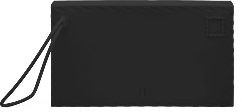 21,5 x 12,2 x 5 cm. Silicona. Cartera de mano en forma de sobre con solapa imantada y correa desmontable. Presentación en caja de regalo.