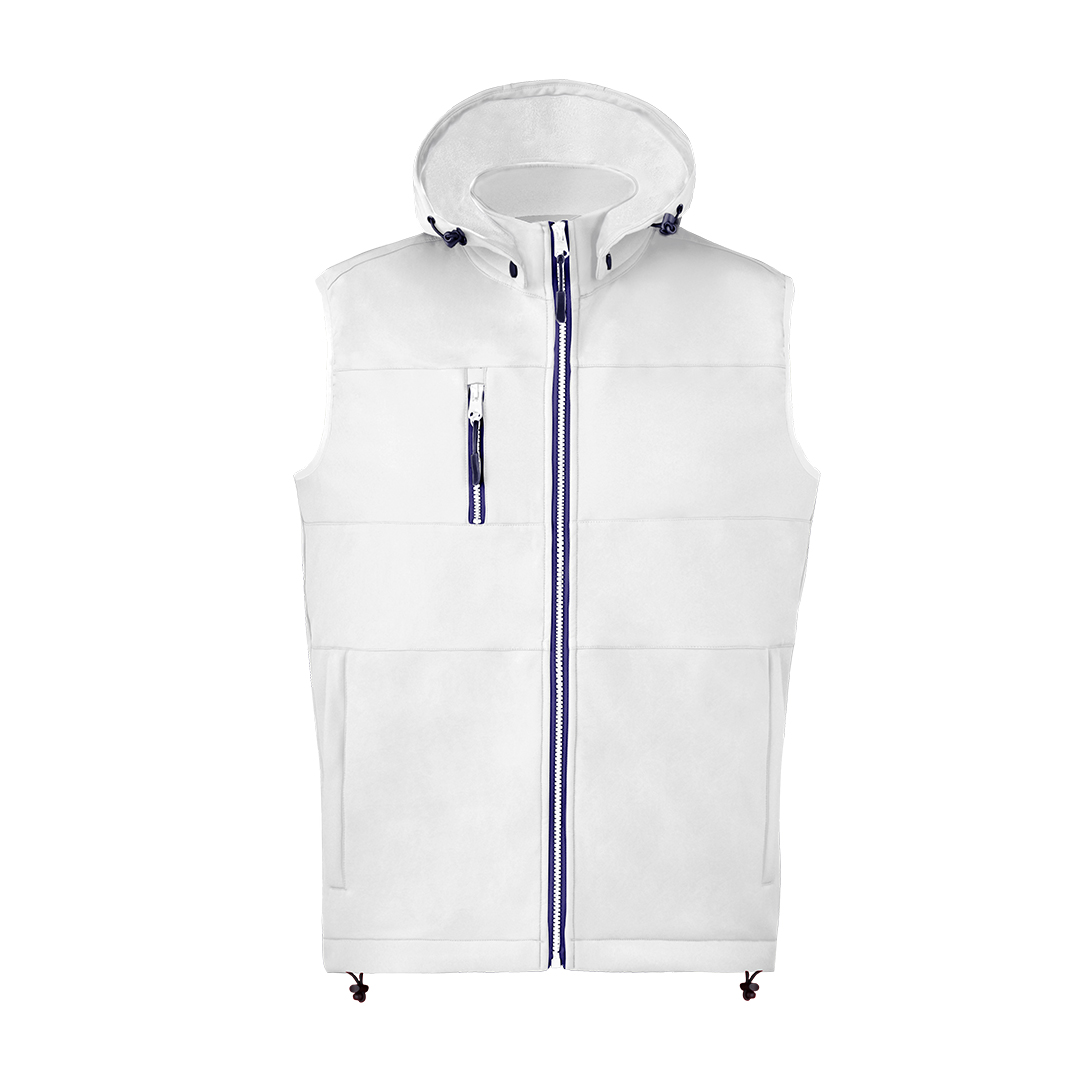 Chaleco de resistente y transpirable material soft shell de 300g/m2. De corte moderno, con cremallera central, bolsillos laterales y práctico bolsillo en pecho con cierres de cremallera y tiradores en contraste. Cuello elevado con capucha ajustable y desmontable. Dobladillo inferior con cordón ajustable. Exterior en soft shell resistente al viento y al agua, e interior de cálido micropolar en color contraste. Disponible en tallas XS, S, M, L, XL, XXL. Resistente al Viento y al Agua.