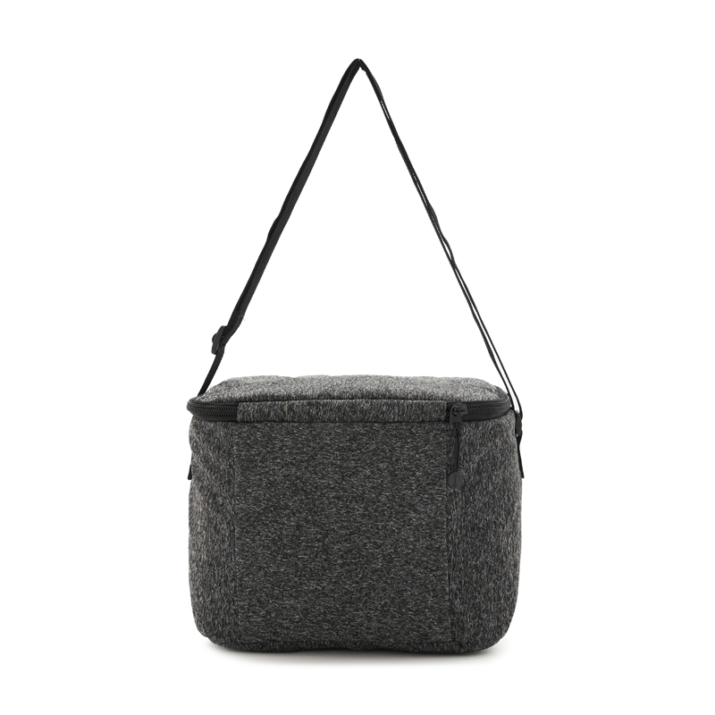 Cooler fabricado en tejido de punto como lienzo de nieve, con un revestimiento interior de espuma de polietileno y PEVA. El producto viene en una bolsa de PLA 100% biodegradable. Dimensiones: 22,5 x 18 x 16 cm. 6L