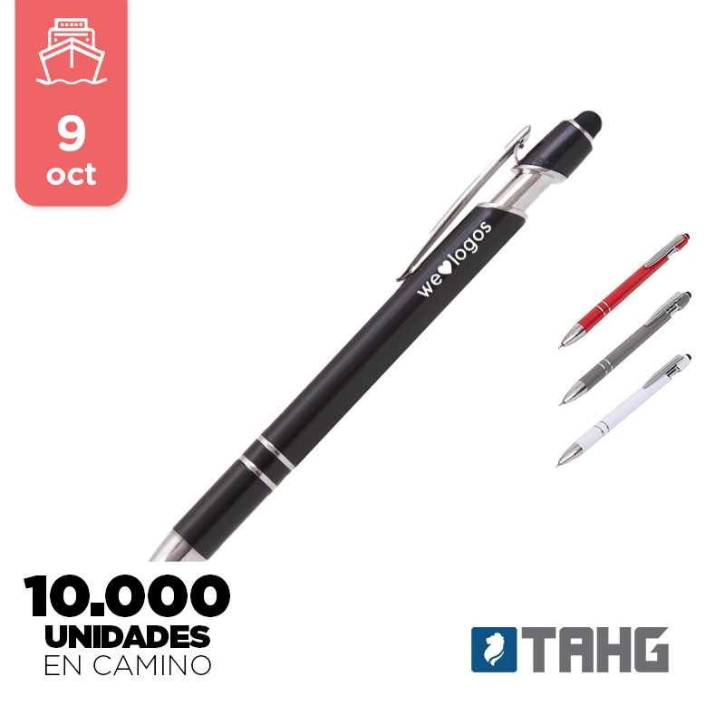 Lápiz de cuerpo sólido, realizado en ABS. Tinta de color azul. Apertura con con clip retractil. Posee touch para pantallas táctiles. Tahg