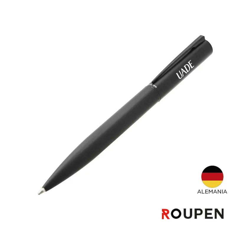 Lapiz de acero con detalles en latón, acabado negro mate. Dimensiones: 13,6 x 1,25 cm. Cuenta con tinta azul. Roupen.