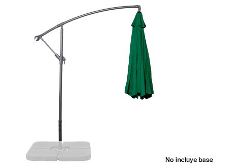 Quitasol colgante redondo de Ø3m, modelo "Banana", con 8 cascos de lona Poliéster UV impermeable de 160g. Contiene varas reforzadas de Acero recubierto de 12 x 18mm, asta de Acero recubierto de 48mm, sistema de apertura manual.